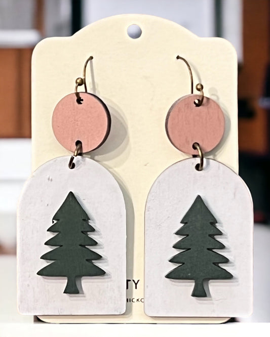 Raised Christmas Tree Dangle Earrings